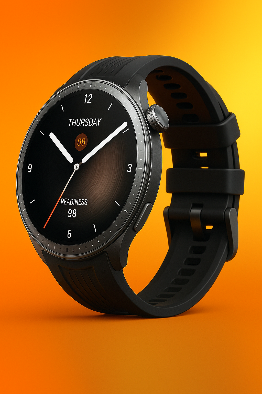 Dimensi proporsional: Diameter bodi sekitar 47 mm sedikit lebih besar dari pendahulunya tetapi tetap nyaman dipakai karena berat hanya 42 gram.